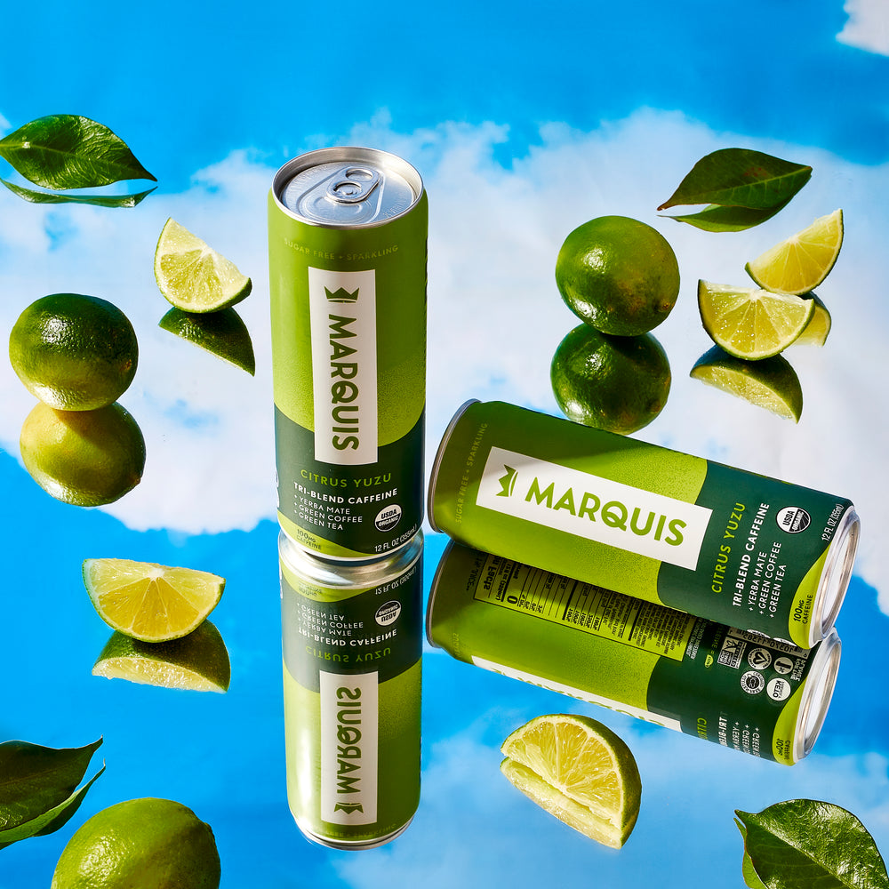 Our blend is sustainable and plant-based won’t skimp your caffeine dose! An average cup of coffee (about 8 ounces) contains about 95 milligrams of caffeine. Each can of Marquis contains 100 milligrams of plant-based organic caffeine. Our blend fuels you naturally - without harsh caffeine and sugar. In fact, Marquis contains no sugar at all - which brings us to our next point!